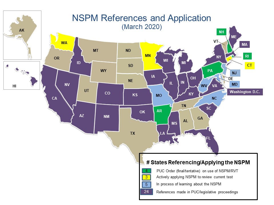 Since its publication in May 2017, awareness, understanding and support for use of the NSPM continues to grow. You can see references to the NSPM in regulatory dockets, federal/US DOE inquiries, legislative bills, and other documents where the NSPM is recommended as the framework that jurisdictions can use to inform their cost-effectiveness practices.
